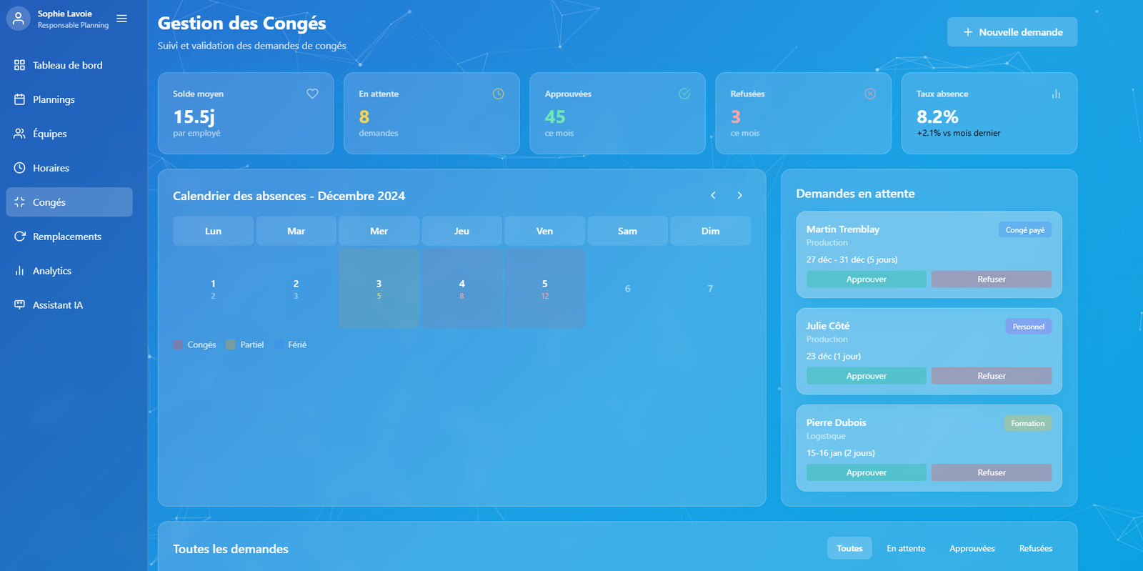 Demandes en ligne Validation automatique Planification intelligente Gestion des remplacements